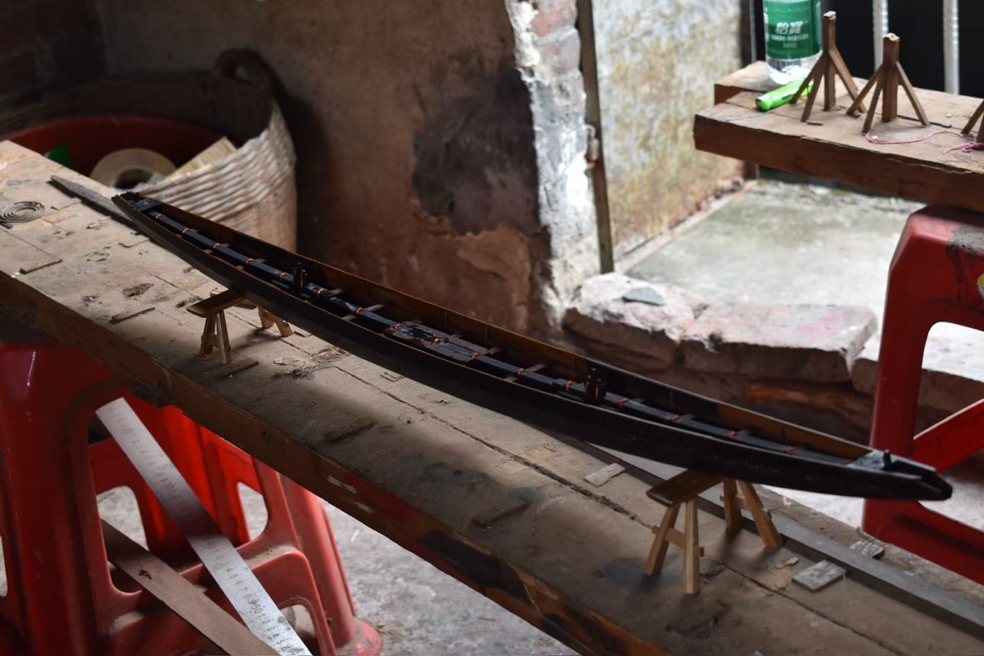 与赛场的喧闹不同,这里安静得能听见刻刀与木头接触的“沙沙”声。师傅正在专注地打磨着手中的龙头坯,神情一丝不苟。队员们轻手轻脚地拿起相机,记录下这门古老手艺的制作过程:未成型的木料在师傅手中逐渐显露出龙角的弧度、龙须的飘逸,每一刀都藏着岁月沉淀的巧思。