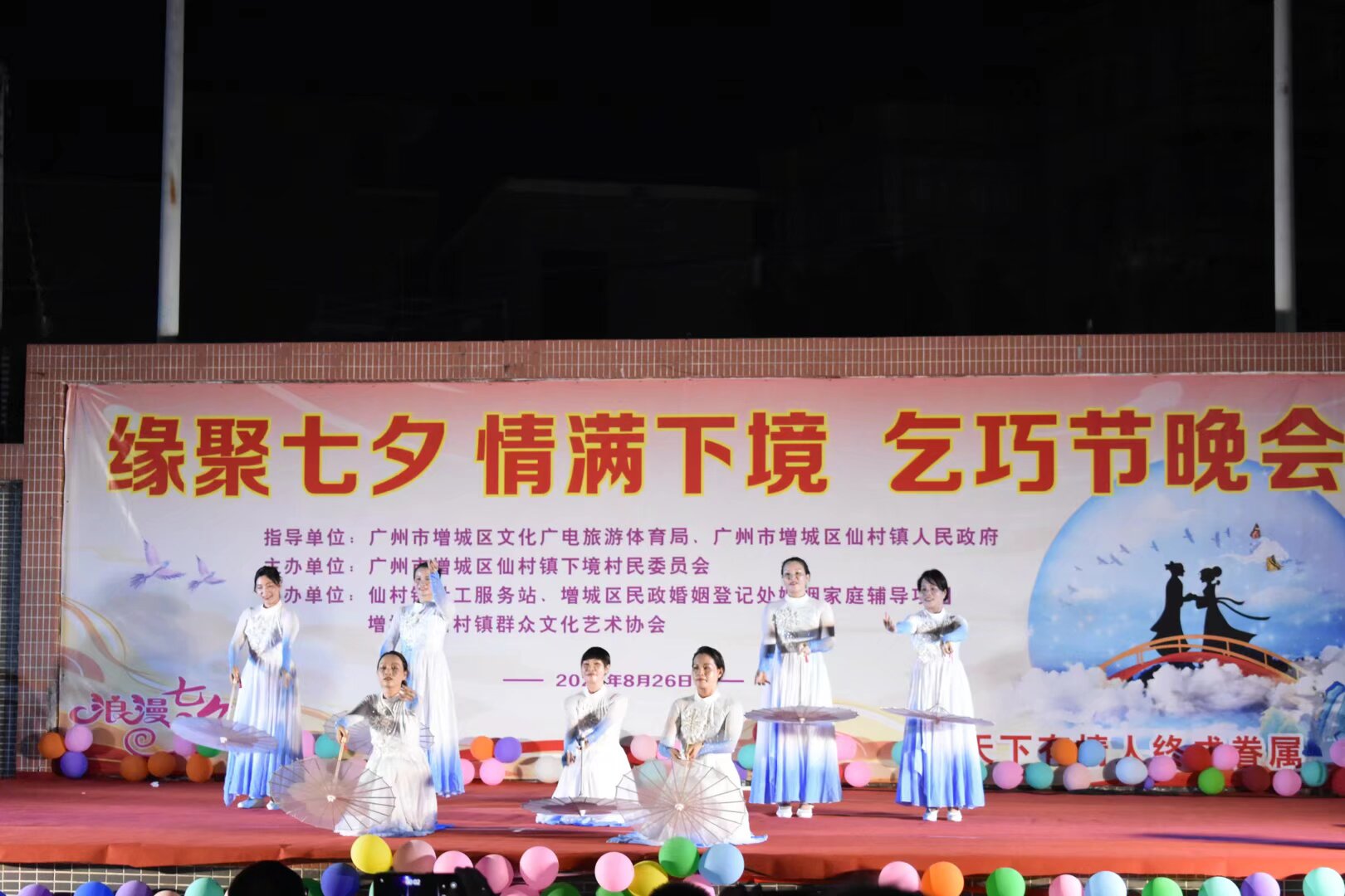 晚会现场,舞台表演呈现出传统与创新的有机融合:既有体现民俗底蕴的经典节目,也有融入现代元素的创新演绎,如同一幅动态的民俗画卷,生动展现了七夕节的浪漫氛围与生活气息。