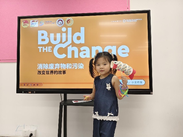 第二堂课围绕“消除废弃物与污染”展开。通过“最讨厌的废弃物”投票互动,引发小朋友们对塑料瓶、废电池、剩饭菜等垃圾问题的思考。志愿者介绍了“光盘行动”“剩菜堆肥”等实用环保技巧,并借助趣味动画和“惜食魔法袋”教具,强化珍惜粮食的意识。小朋友们还利用废旧塑料瓶、纸杯等创作出一个个生态主题艺术装置,在实践中理解环保与美学的结合。四岁的宸宝举着自制的“纸杯小鱼”兴奋地说:“垃圾也能变宝贝!”