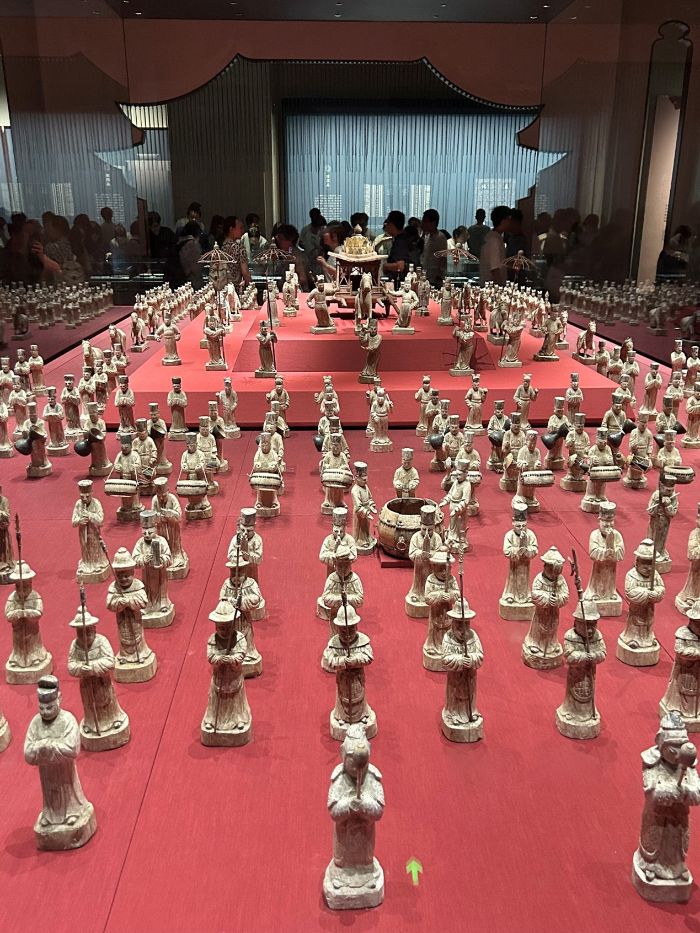 步入宽敞明亮的大厅,巨大的鲁国大玉穹顶装饰映入眼帘,自然光从穹顶倾泻而下。我们沿着象征黄河的黄色地面前行,迫不及待地奔向“海岱日新——山东历史文化陈列”展厅,那里有我心心念念的陶器世界。