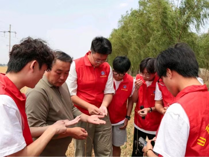 在村落的麦田中,实践团成员围站在农业技术人员身旁,一起研究当地特色作物 —— 黑小麦,专注聆听、仔细观察。从作物播种间距到病虫害防治,从养殖周期管理到生态循环要点,大家虚心求教,把课堂知识与田间实践深度融合。一双双求知的眼睛、一次次认真的触摸,让课本里的农业理论落地生根,也让青年学子懂得,乡村振兴离不开科技赋能,更需要年轻人俯下身、沉下心,把论文写在希望的田野上。