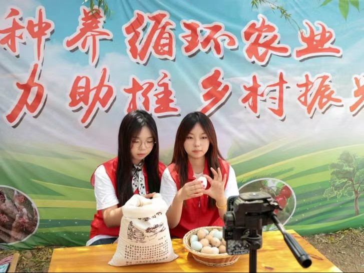实践团成员聚焦“种养循环农业”,化身助农主播,在善仁农园搭建起直播阵地。面对镜头,他们手持着成员们亲手拾取的农园特色土鸡蛋和黑小麦磨出的面粉,从生态种植养殖模式讲起,详细介绍产品品质与营养价值,将田间地头的新鲜产出推向更广阔市场,以青春创意为乡村产业注入数字活力,助力打通农产品销售“最后一公里”,让种养循环的绿色价值被更多人看见。
