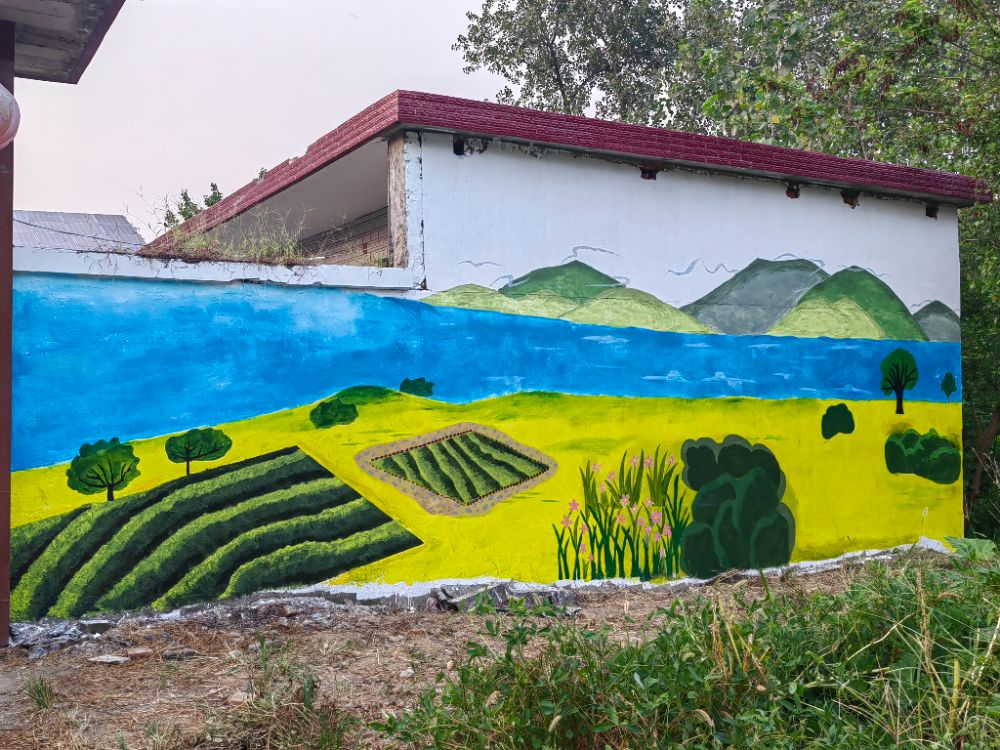 “绿映长山,茶香十里”。长山村,地处扬州西陲,是一座拥山抱水、绿意盎然的丘陵村落,素有“十里长山”之美誉。这里农业形态多元,六百亩茶园更是承载着悠远茶香与人文积淀。在乡村振兴战略全面推进的背景下,人居环境美化与生态文化传播成为重要课题。为进一步美化乡村环境、传播“绿水青山就是金山银山”的生态理念,8月25日,南京农业大学资源与环境科学学院“丹青染乡韵”实践团前往仪征市长山村,开展生态主题墙面彩绘工作,以画笔为媒,绘生态于墙,用实际行动参与乡村建设,书写“绿蕴长山,茶生富韵”的乡村新篇章。