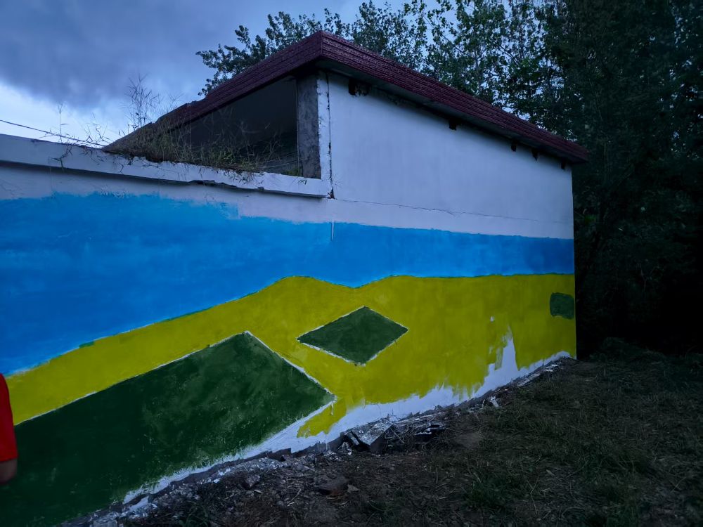 首日工作结束时,右侧墙体的主体图案已初步显现。团队复盘当天工作,优化流程,并针对第二天任务进行再分工,力求高效优质完成全部绘制内容。实践团将继续推进剩余墙面的绘制与修饰工作,加强对已完成区域的维护与细节完善,确保整体风格统一、视觉效果持久,为长山村乡村振兴与文化提升贡献青春力量。