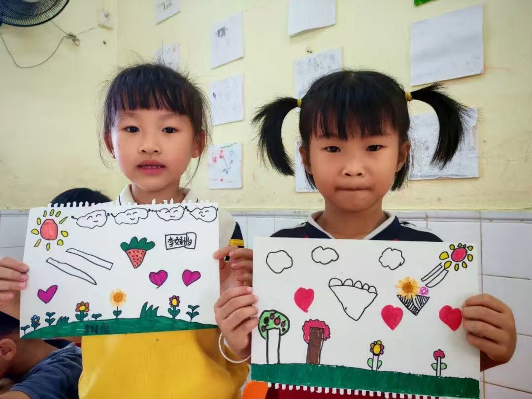 图为小朋友们与作品的合照 南粤星火实践团摄