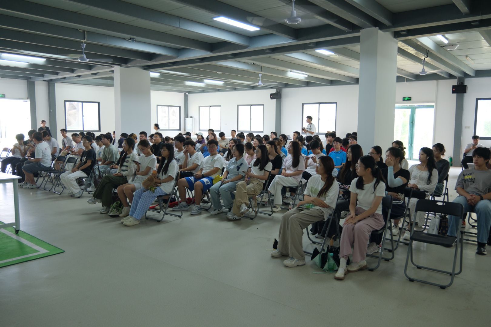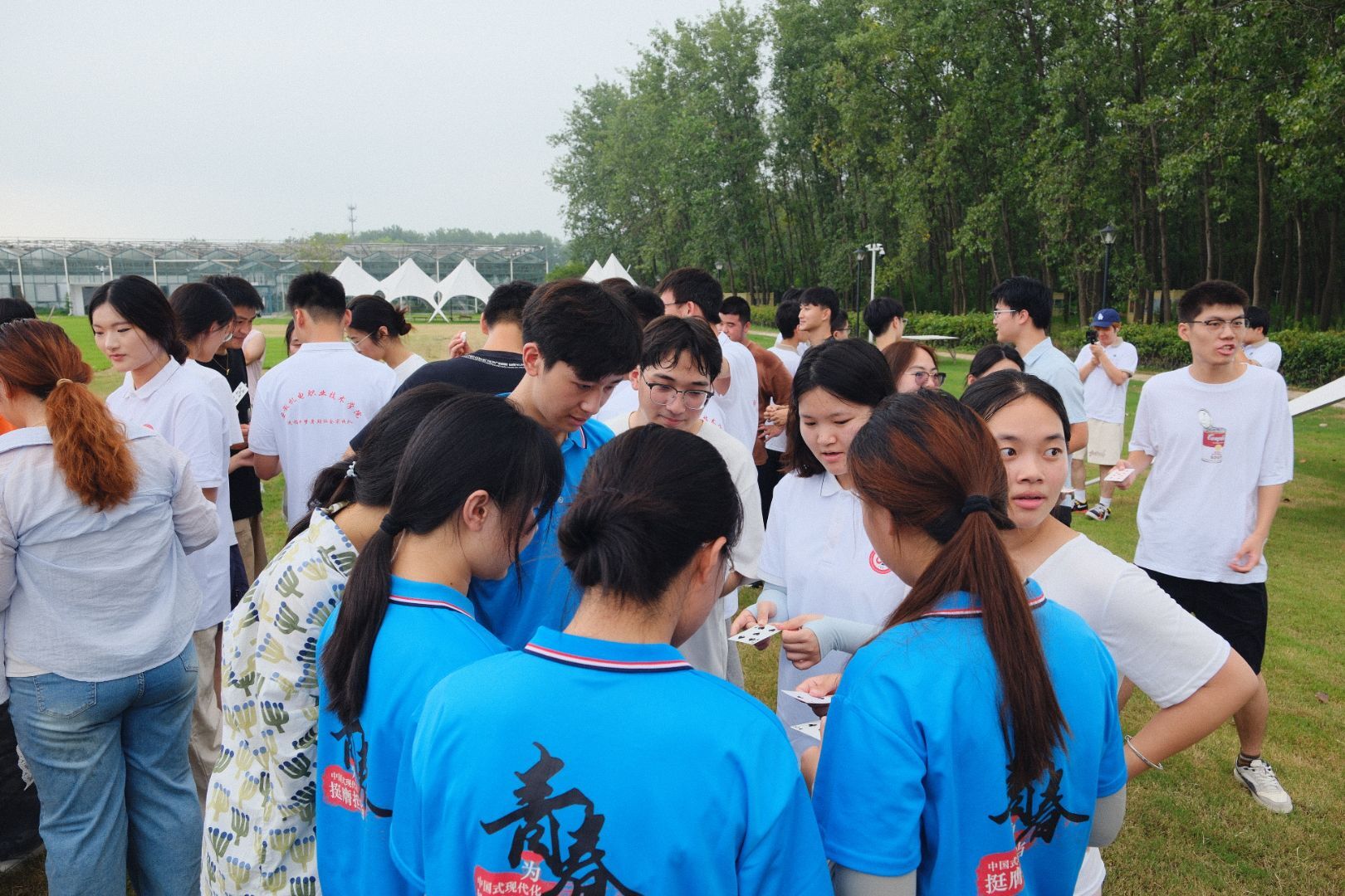 第二天上午,师生们在风景如画的大圩·森境户外训练基地开展了丰富多彩的团队拓展训练。通过“多项拔河”“击鼓传球”等集体项目,同学们不仅在竞技中锻炼了协作与沟通能力,也更加理解了团队精神在乡村振兴中的重要意义。巢湖学院学子在比赛中表现突出,展现了优秀的综合素质。下午,大家转场至海轩文化数字产业园,参加了由合肥市劳动模范、大圩镇商会会长吴群学主讲的电商助农专题培训。吴会长结合真实案例,为大家讲解了农产品电商的运营技巧与文化叙事方法,强调“用好直播工具,讲好乡村故事”,为同学们打开了“互联网+农业”创新思维的大门。