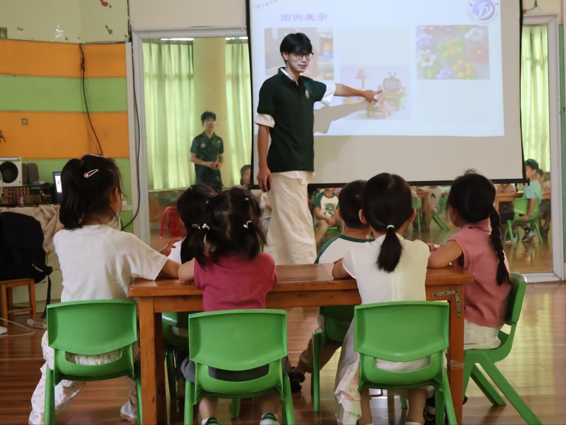 活动准备阶段,实践队队员在确保各项环节准确无误后,迎接幼儿园小班学生的到来。课程开始,授课队员以亲切的引导语帮助小朋友们快速进入课堂状态,详细讲解了粘土的性质与可塑性,展示了粘土作品图片。随后,队员们带领小朋友动手操作,指导他们用粘土捏出各类物品。课堂上,孩子们专注投入,积极参与,动手能力与想象力得到了有效锻炼。