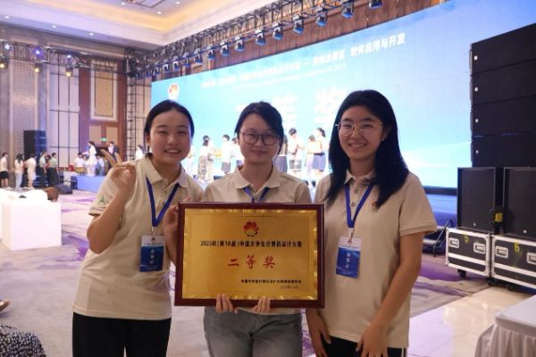 在朱虹老师的带领下,“一植陪伴”项目组成员张欣玉、赵洋、李卓玉前往了山东济南参加了全国大学生计算机设计大赛,取得了全国二等奖的优秀成绩
