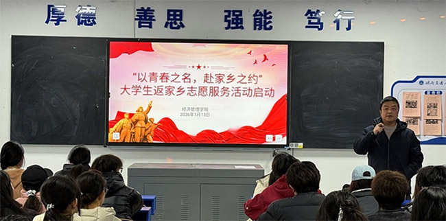 为培养大学生“知家乡、爱家乡、颂家乡”的真挚情怀,引导广大青年学子深入基层、走进社会、认识社会、服务社会、回报社会,在躬身实践中筑牢家国认同,担当时代使命,1月13日,湖南交通工程学院以“以青春之名,赴家乡之约”为主题,在全校各二级学院同步启动2026年寒假大学生“返家乡”社会实践活动。