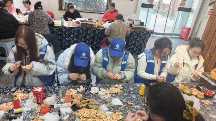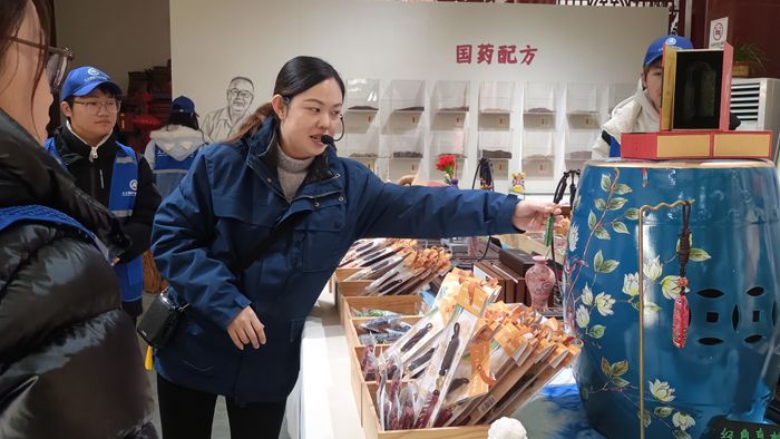 图为团队在讲解员的带领下参观香包文化大院 陈雨菲供图