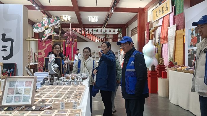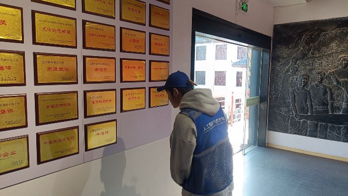 图为(另一个角度)团队在讲解员的带领下参观香包文化大院 陈雨菲供图