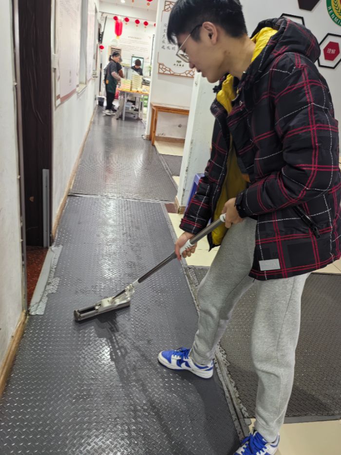 图为实践团成员在敬老院拖地。通讯员施靖烨 供图