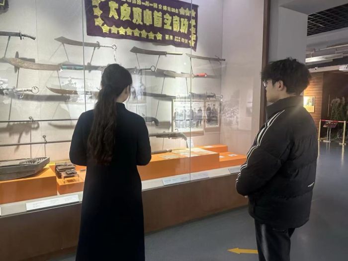 踏入德州市乐陵市冀鲁边革命根据地纪念馆,展柜里泛黄的《烽火报》原件、布满弹孔的步枪、被鲜血染红的绑腿布,瞬间将实践队员拉回到那段烽火岁月。作为山东建党较早、抗战时期坚持时间最长的抗日根据地之一,冀鲁边根据地曾被誉为“山东小延安”。“当时冀鲁边区处在津浦铁路以东,北靠天津,南接济南,战略位置十分重要。日军曾先后发动五次‘治安强化运动’,对根据地进行残酷扫荡。”纪念馆讲解员向实践队员介绍道,“仅1942年的‘六·九’大扫荡中,日伪军就集结了两万余人,对根据地进行‘铁壁合围’式清剿。”
