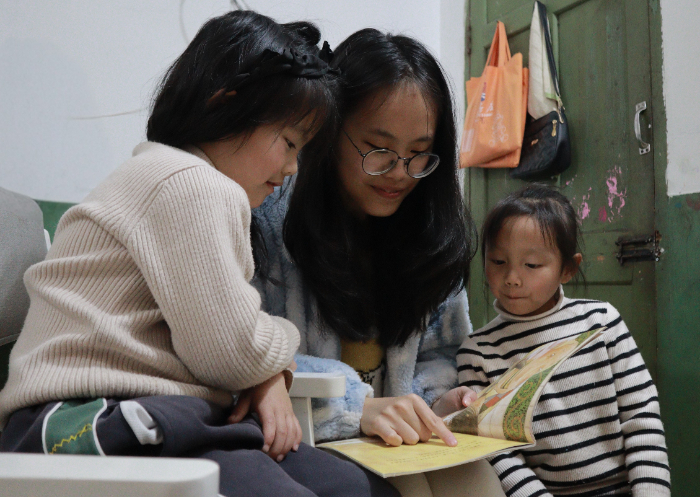 团队成员走进困境儿童家中,同步进行阅读互动 姚佳颖 供图