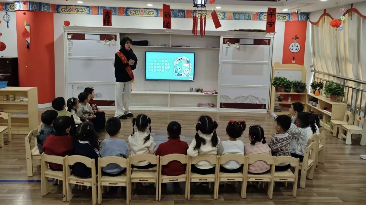 志愿者以PPT的方式为小朋友们讲解垃圾分类知识