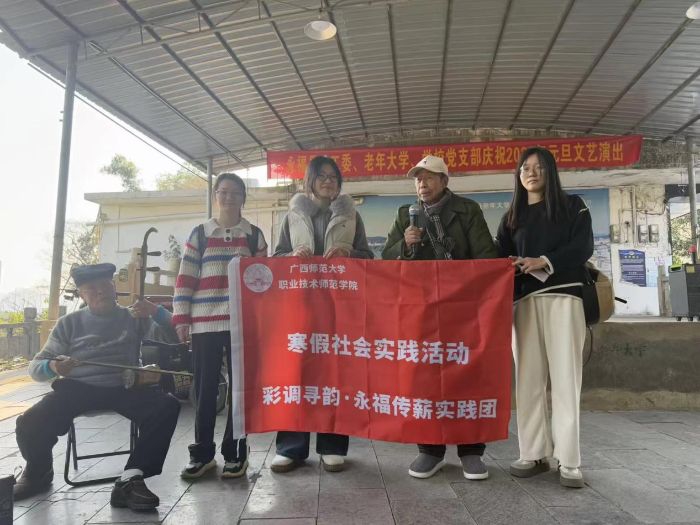 2026年1月11日至1月13日,广西师范大学职业技术师范学院“彩调寻韵·永福传薪”实践团走进桂林市永福县,开展为期三天的寒假社会实践活动。实践团以国家级非物质文化遗产彩调为调研核心,通过文献溯源、实物探秘、活态观摩、根脉探访等多种形式,全方位探寻彩调文化的传承脉络,沉浸式体悟彩调艺术魅力,为彩调非遗的活化传承与创新发展注入青春动能。