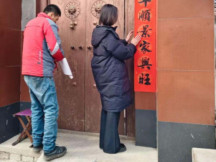 活动现场,志愿者们向社区居民发放提前书写的春联与福字,根据居民需求提供相应服务,讲解春联相关内容,协助居民完成挑选,向居民传递新春祝福。在现场服务结束后,志愿者分组开展入户服务,前往辖区内独居老人、行动不便的特殊家庭中,为服务对象张贴春联与福字,张贴前对门窗表面进行清理,规范完成张贴工作,保证张贴效果整齐牢固。志愿者与服务对象进行交流,了解居民日常起居与身体健康状况,提醒居民在节日期间注意用火用电安全与防寒保暖事项。社区居民王女士对本次志愿服务活动作出评价,认为志愿者的服务细致到位,为居民带来了实际便利,对志愿者的工作表示肯定与感谢。