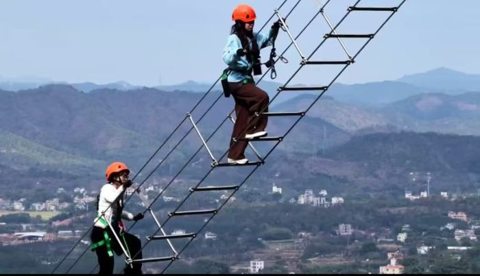 (该图是实践成员在攀越飞拉达。飞拉达工作人员供图)