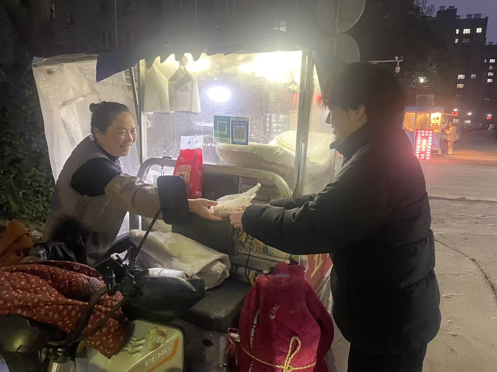 图为同学与阿姨学习徐州烙馍卷馓子。何宜洲 供图