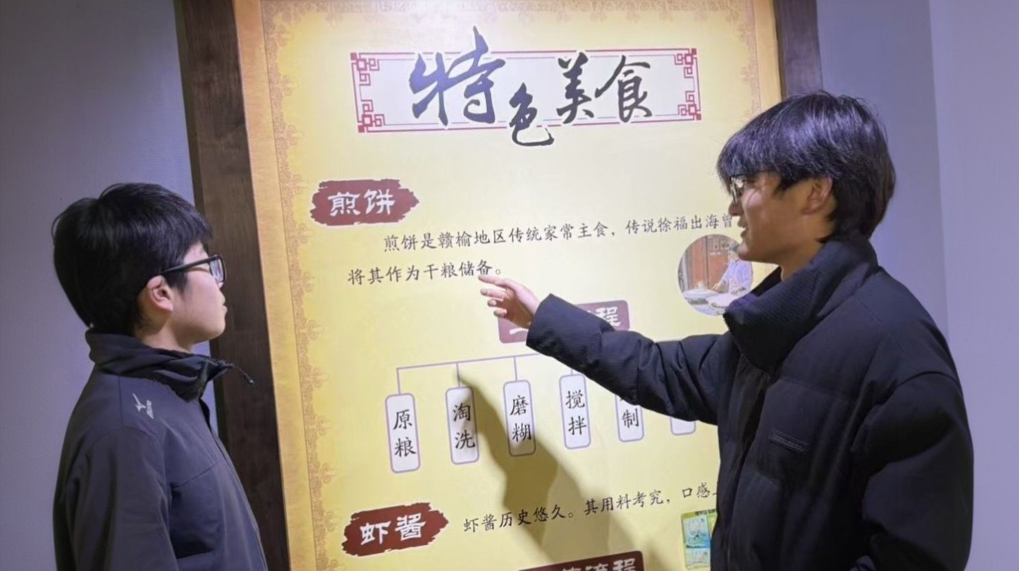 图为同学参观学习赣榆煎饼。杨智铭 供图