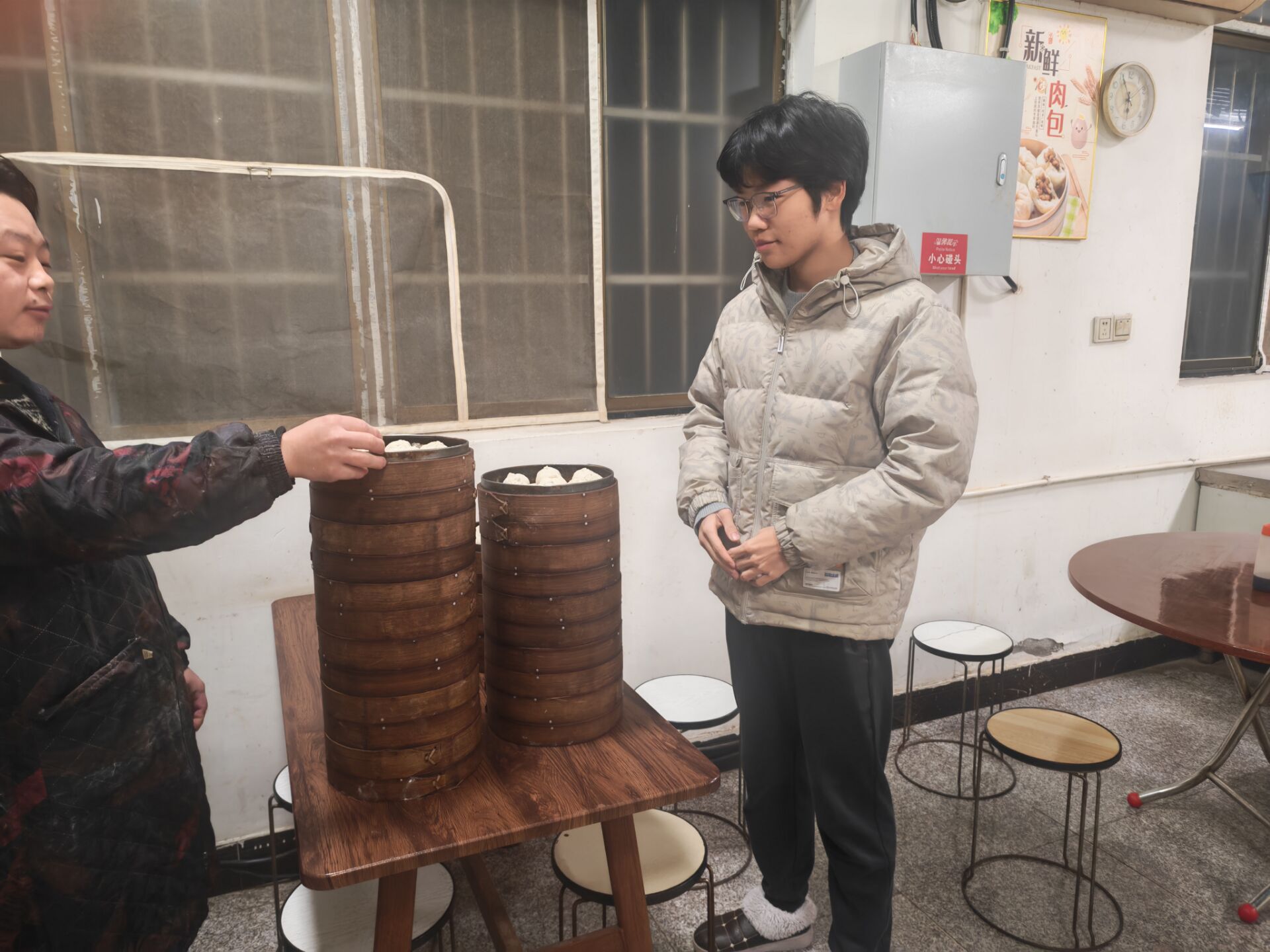 图为同学学习兴化特色的包子。戴志鑫 供图