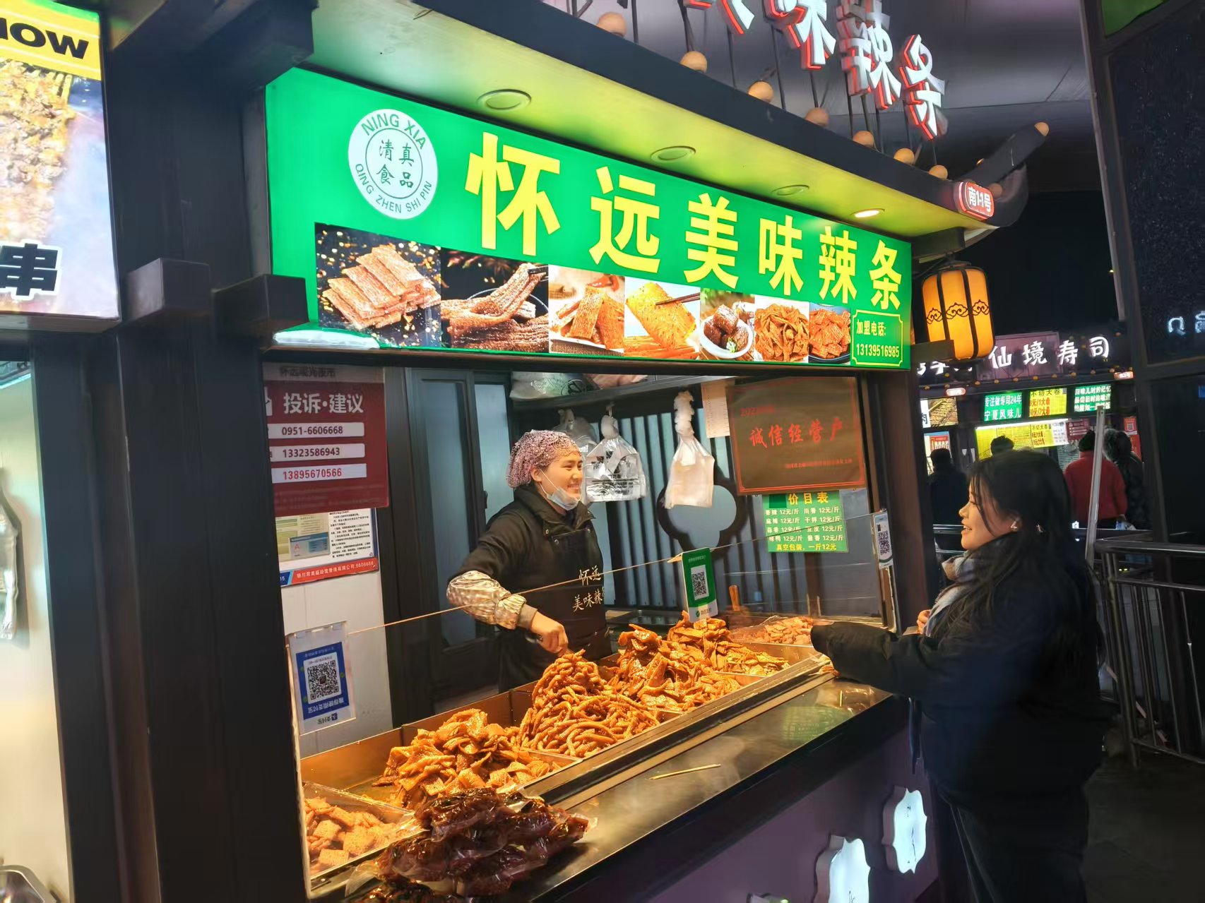 图为同学了解宁夏特色辣条。王玲玲 供图