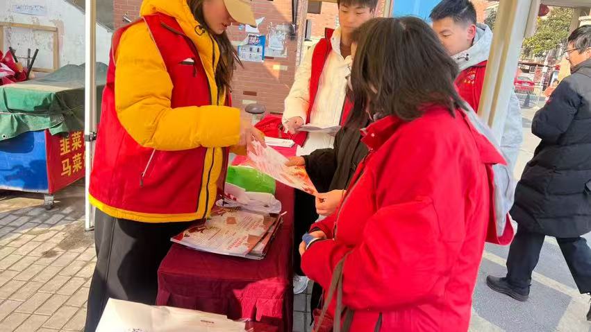 在节约粮食倡导部分,同学们结合生活实际,细致介绍“光盘行动”的具体做法,分享日常餐饮中的实用节约技巧,引导居民从细节入手,践行节俭理念。宣传过程中,同学们态度认真、言语亲切,吸引了众多居民驻足聆听与交流。