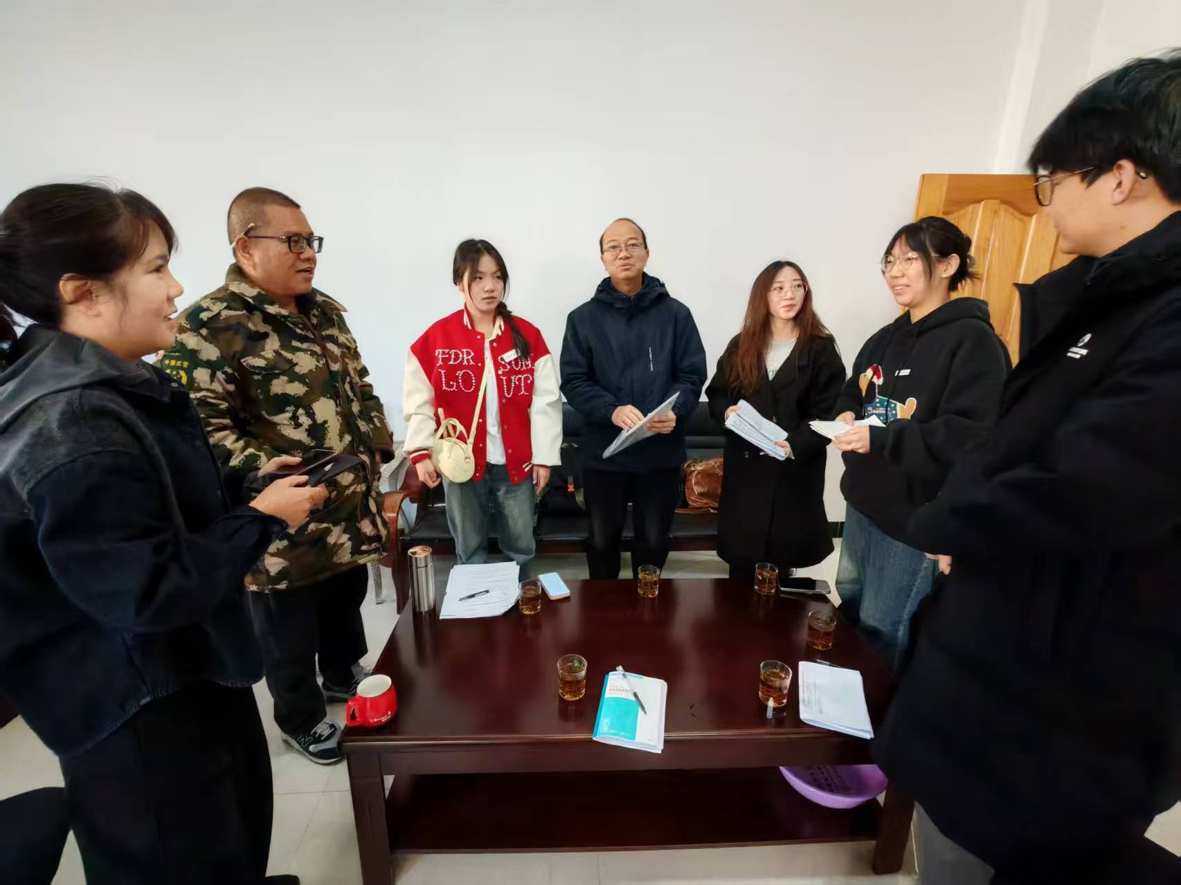 指导教师、云南财经大学经济研究院副院长白廷斌在每场座谈后引导学生追问:“政策堵点具体卡在哪个科?”“这笔账有没有算进农户投工投劳?”人事处副处长张玉琨则协助对接政府部门,确保调研行程精准覆盖项目落地的关键环节。经济学院党委副书记王晶在后方持续提供建议,形成“学生主导、教师护航”的实践闭环。