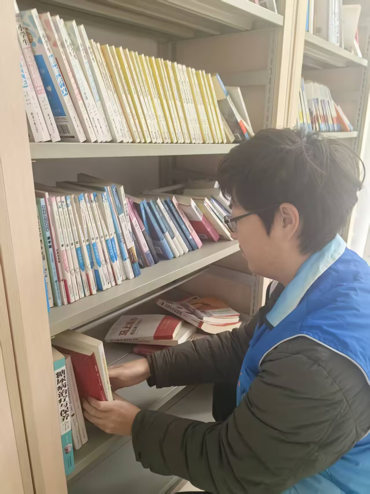 图为志愿者协助图书管理员整理书架。杨盛涵 供图