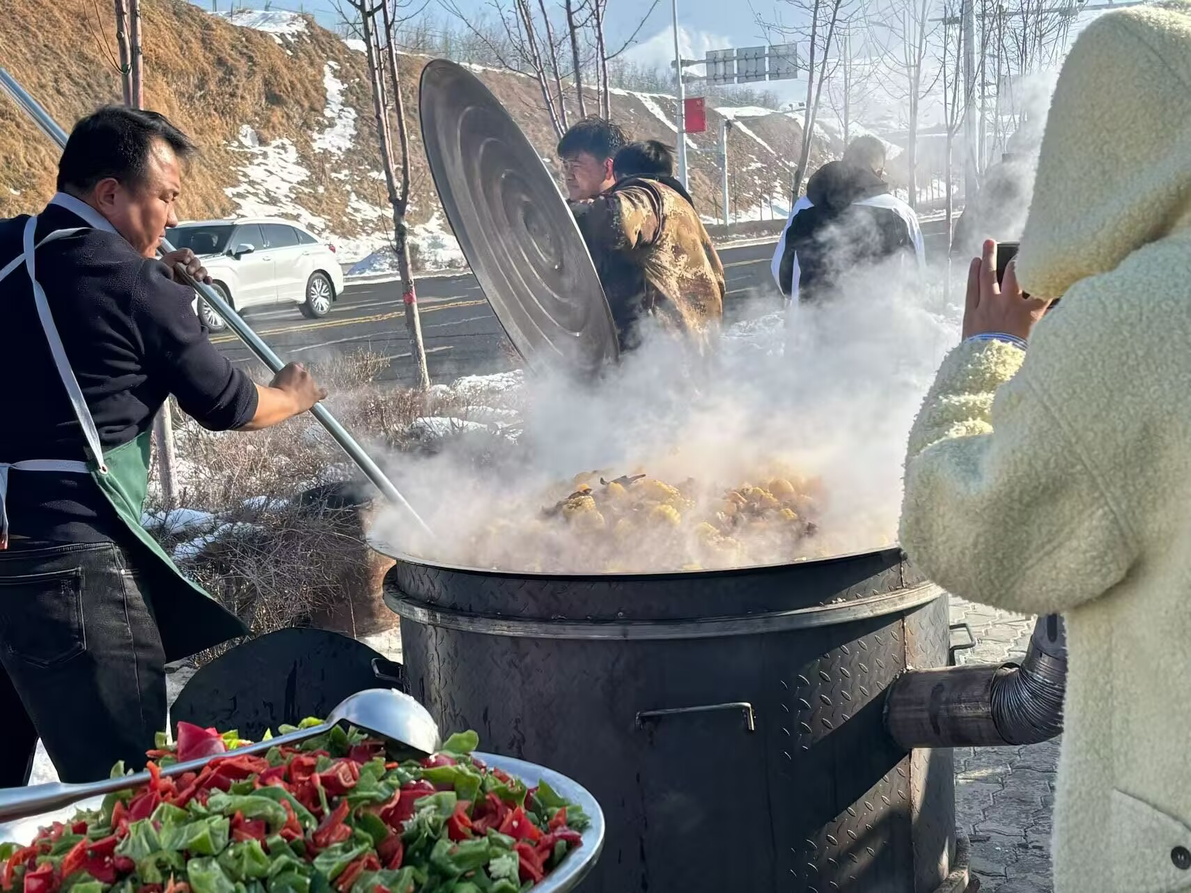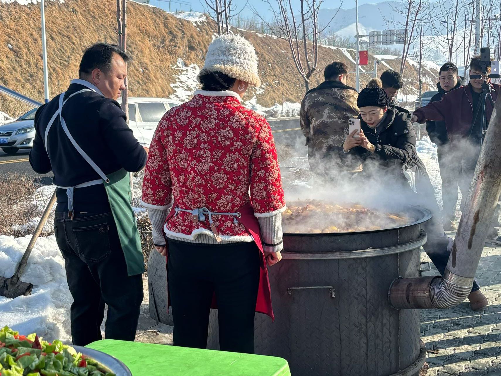 图为支援者帮忙制作并宣传大盘鸡。李忻怡 供图