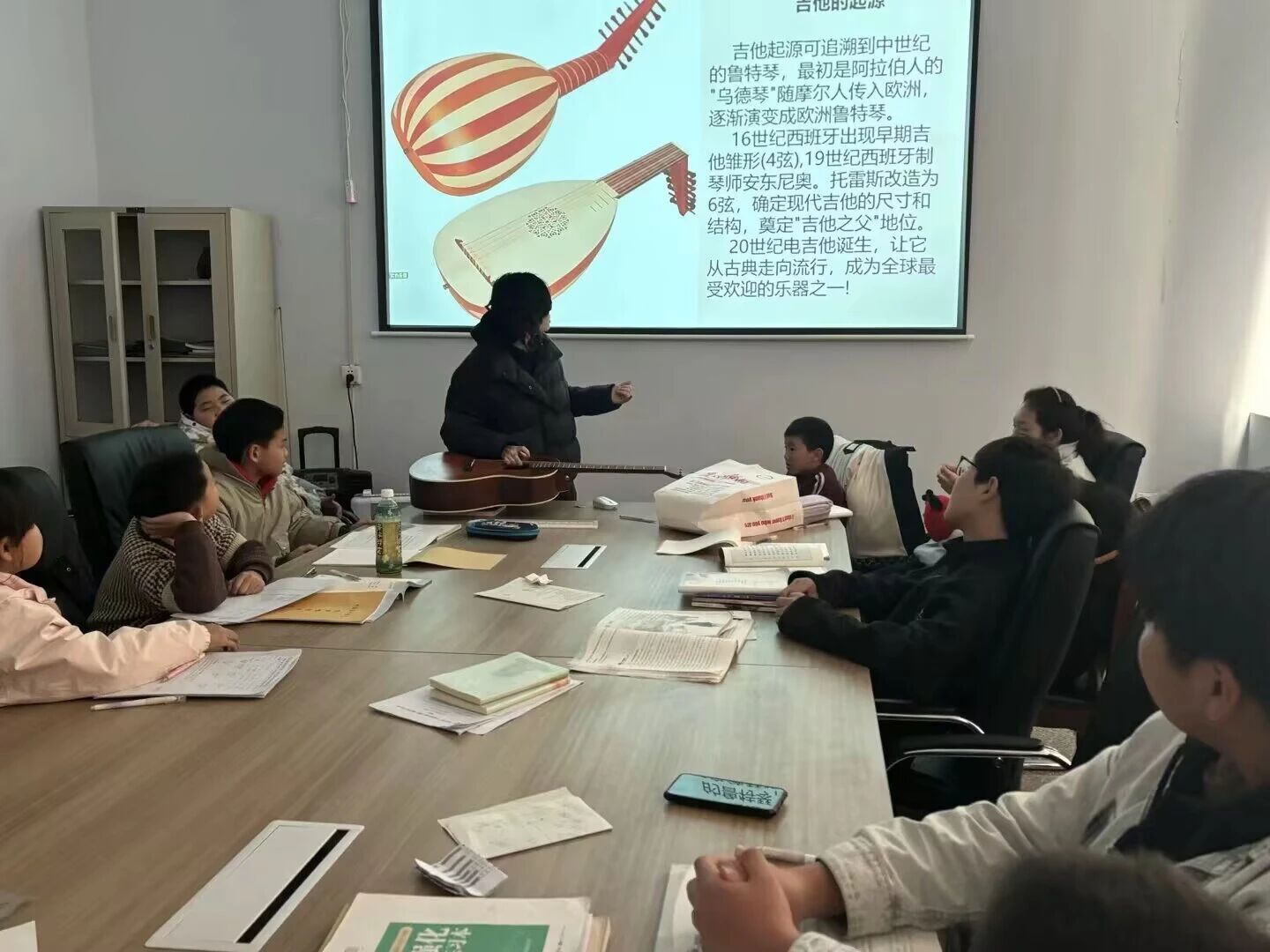 李宇晗老师的吉他课点燃了孩子们的音乐梦想。“认识吉他”课上,当她拨动琴弦弹出熟悉的儿歌时,孩子们瞬间安静下来,眼神中满是崇拜。到了“学习弹唱”课程,她手把手教孩子们按弦、拨弦,虽然刚开始手指会疼,但没有一个孩子放弃,大家互相鼓励,当简单的旋律从自己指尖流出时,孩子们的脸上绽放出灿烂的笑容。有个叫小宇的孩子,因为家里条件有限,之前从未接触过乐器,刚开始学吉他时,手指磨出了水泡,却依然坚持练习。李宇晗看在眼里,疼在心里,特意为他准备了指套,并鼓励他说:“你已经做得很好了,每一次坚持都是在靠近梦想。”在支教结束时,小宇已经能完整弹唱一首简单的歌曲,他说:“我以后也要像李老师一样,用音乐给别人带来快乐。”