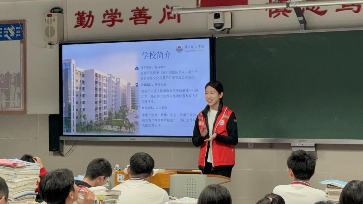 宣讲团队精心准备了视频展播、PPT讲解等多种宣传形式,全方位展示岭南师范学院的办学特色和校园文化。队员们结合自身在大学的学习生活经历,从专业选择、校园环境、社团活动、食宿条件等方面,生动讲述了自己在岭师的成长故事,让学弟学妹们对这所百年师范学府有了更加直观和真切的了解。