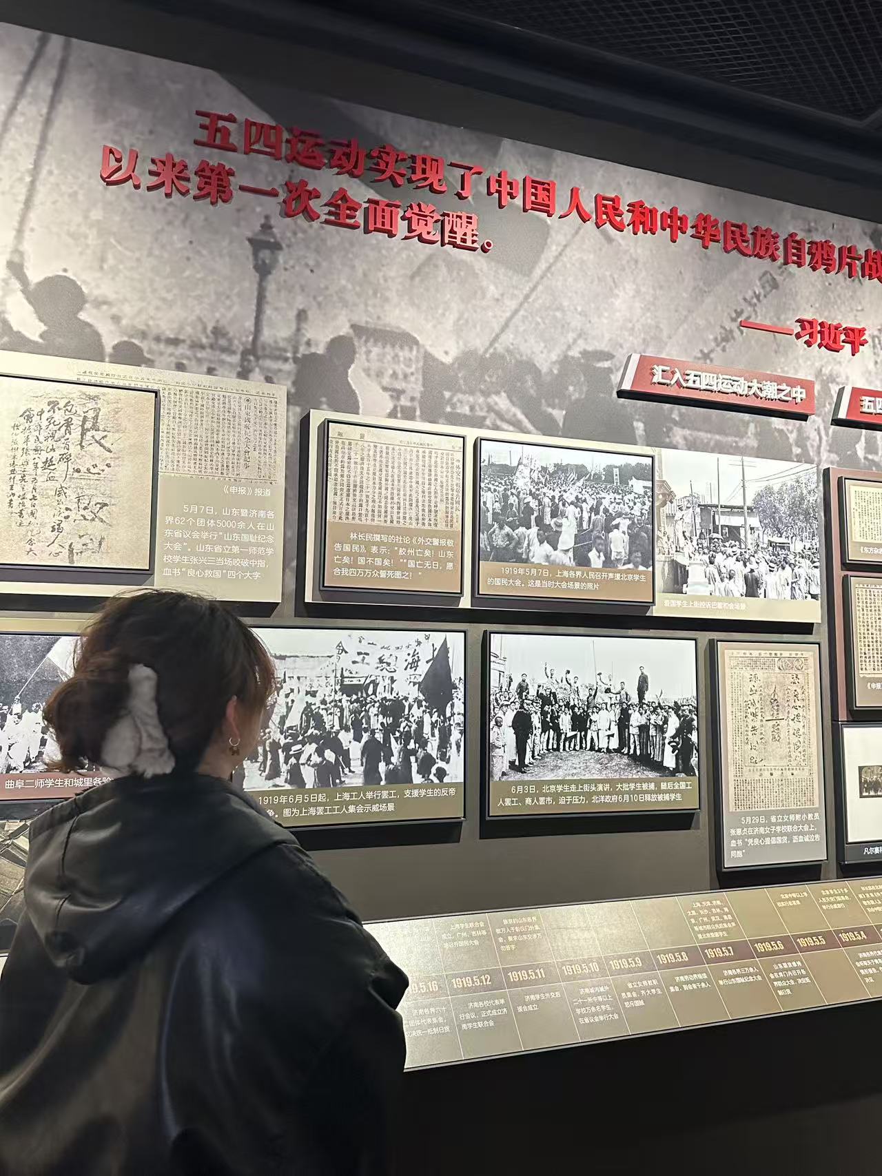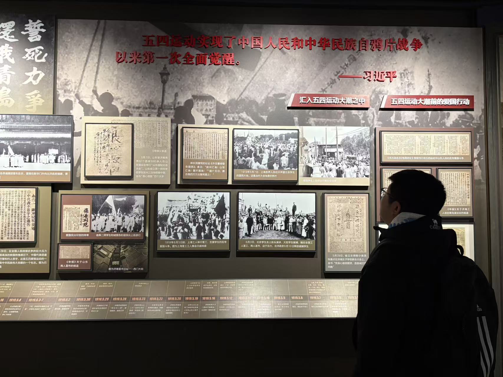 最让我们深受触动、倍感震撼的,是馆内那条镌刻着先辈事迹的扶梯长廊。我们拾级而上,目光紧紧追随扶梯两侧的图文展陈,一步步走进王尽美、邓恩铭的革命生涯,在历史的深化中感悟信仰的力量。