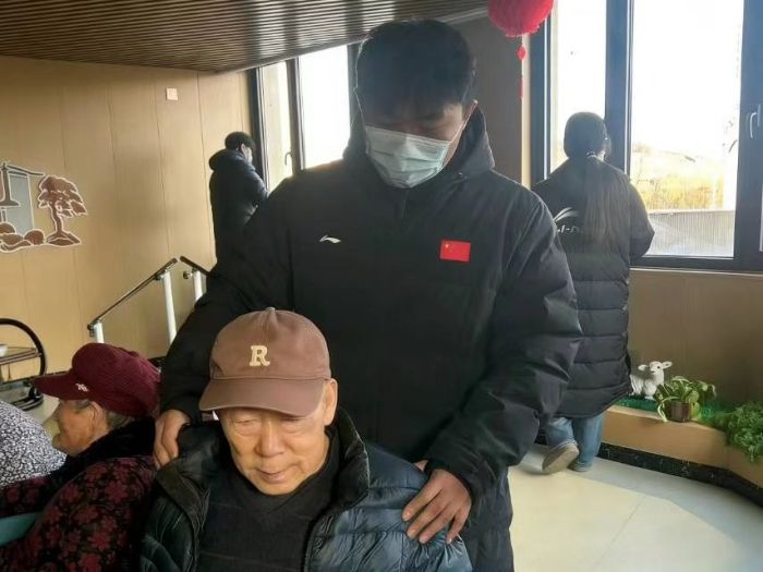 成员们参观、熟悉了老人生活、活动的场所,之后有序进入老人的房间,为老人送去带来的牛奶和水果,给老人按摩放松,为老人整理床铺,给老人们营造良好的环境。