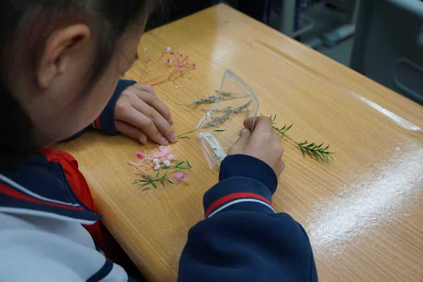 图为学生在制作自然书签