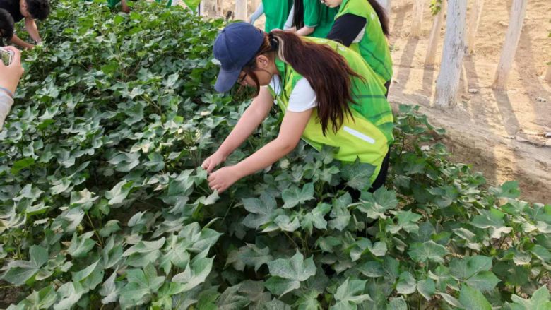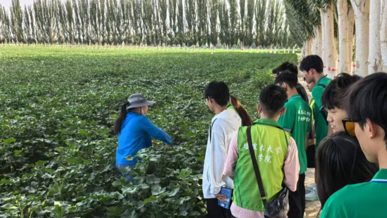到达后,通过与农户交谈知道此时恰逢棉花打顶关键节点,此环节对棉花增产及后续机械化采摘影响重大。团队成员也即刻深入棉田,与农户并肩开展打顶作业。田间,成员们求知若渴,围绕打顶手法、时机等要点,虚心向农户取经。农户们也毫无保留,倾囊相授多年积淀的种植“宝典”,一来一往间,欢笑声与讲解声交织,场面火热。