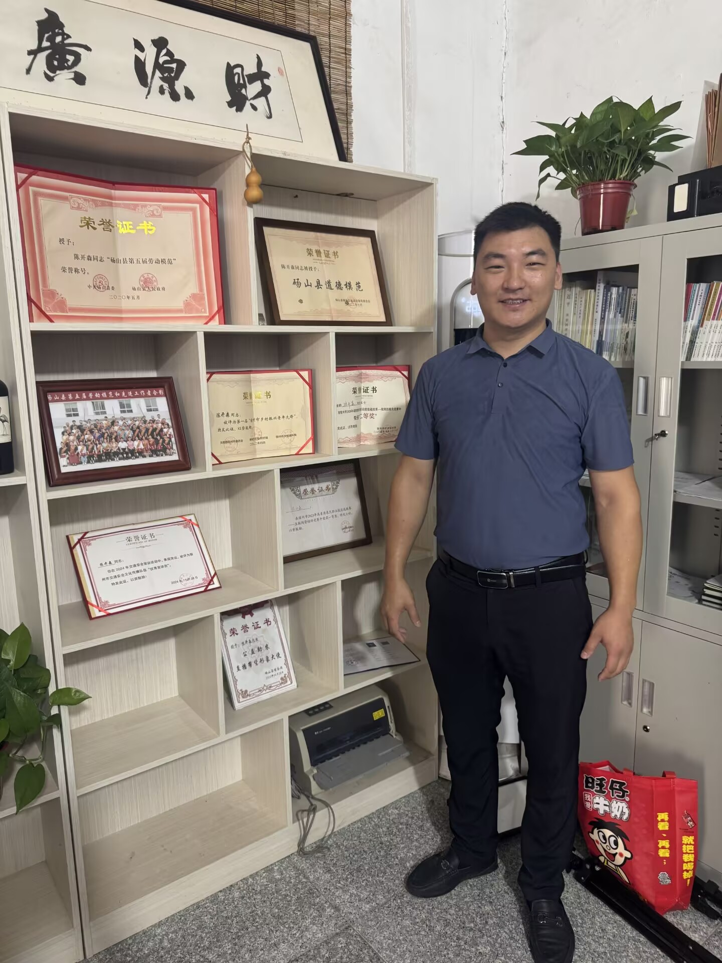 图为陈开森和他获得的荣誉