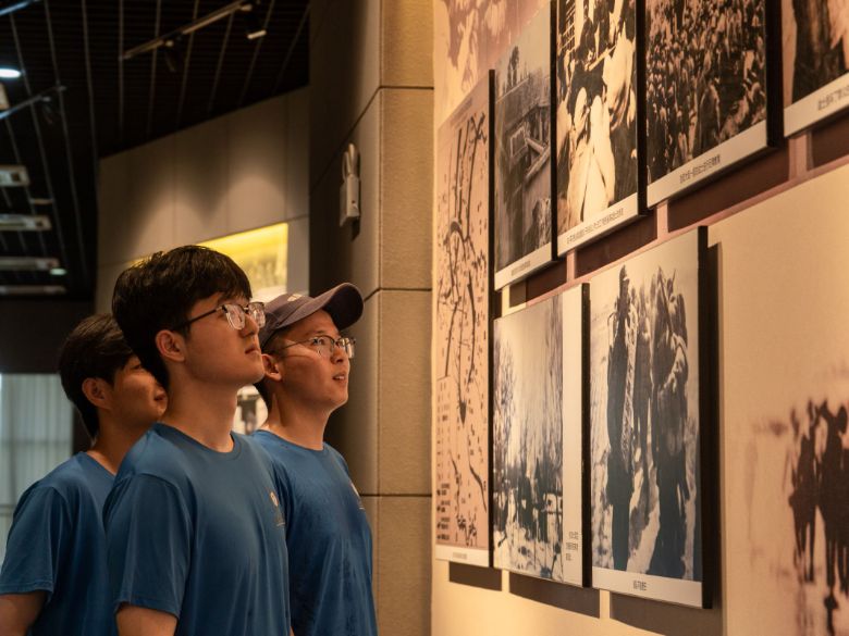 图为星火逐光实践团成员参观学习革命时期照片。田泽坤供图