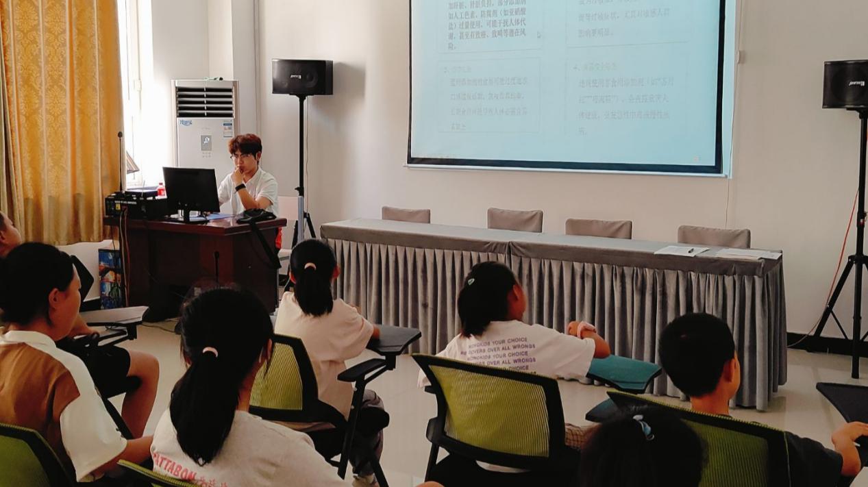 7月4日,团队来到了库尔勒市龙腾幼儿园、丰原社区睦邻会和库尔勒青少年综合实践基地开展食品安全知识课堂。