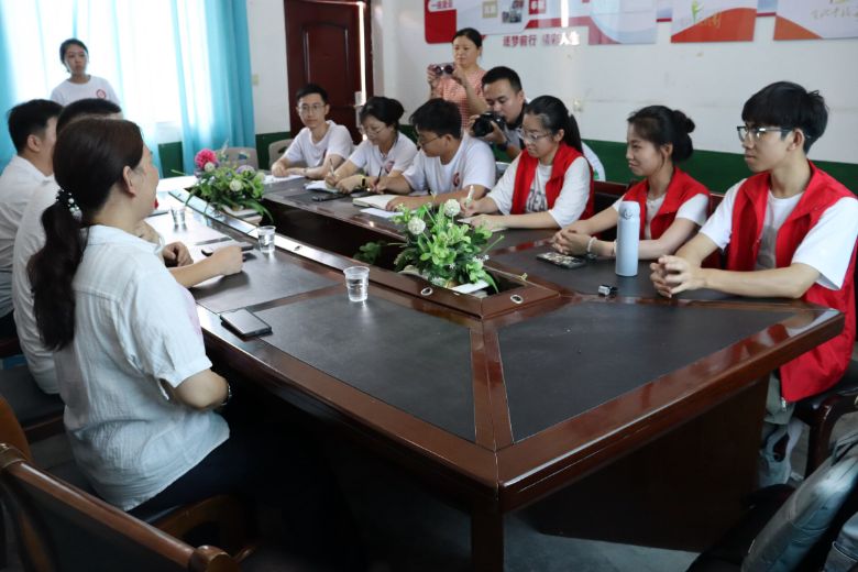 党的十八大以来,以习近平同志为核心的党中央高度重视志愿服务事业,对于关爱“一小一老”社会服务工作始终给予大力的支持。7月5日,在紫竹村政府与湘潭大学金翼5·1·8爱心团队共同创立的榴莲夏令营开营仪式圆满结束后,湘潭大学金翼5·1·8爱心团队赴湘潭市湘潭县谭家山镇紫竹村暑期社会实践团(以下简称“实践团”)与谭家山镇党委副书记、镇长尹呈祥进行了一场深入且生动的交流。紫竹村党总支书记、村主任黄智华,紫竹村党总支书记助理、湖南省委选调生郝志豪及实践团全体成员参加此次交流会。
