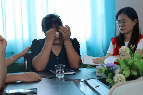 在回忆难忘的志愿服务经历时,艾聪女士稍作沉思,情绪便瞬间涌了上来。她低下头,眼泪盈满眼眶,声音有些颤抖地讲述起村里一位半身瘫痪的孤寡老人的故事。几次哽咽停顿后,她继续道:“老人身体不便,我们第一次去时,她的屋子乱成一团,自己根本没法收拾,看着特别心疼……”真挚的情感让在场的实践团成员也为之动容,眼中充满了对这位志愿者的深深敬意与尊重。