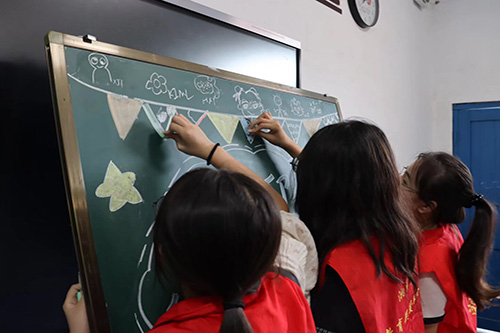 (图为实践团队绘制夏令营各班级欢迎板报)