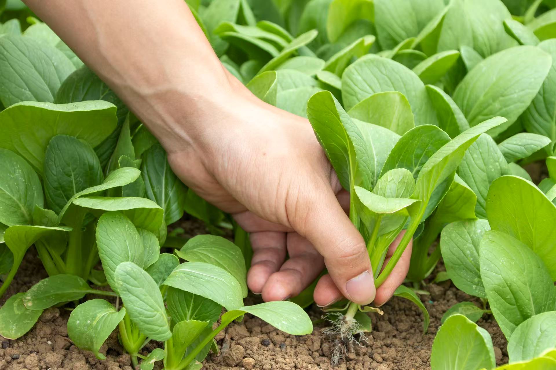 图为当地村民采摘上海青 冯若涵 供图