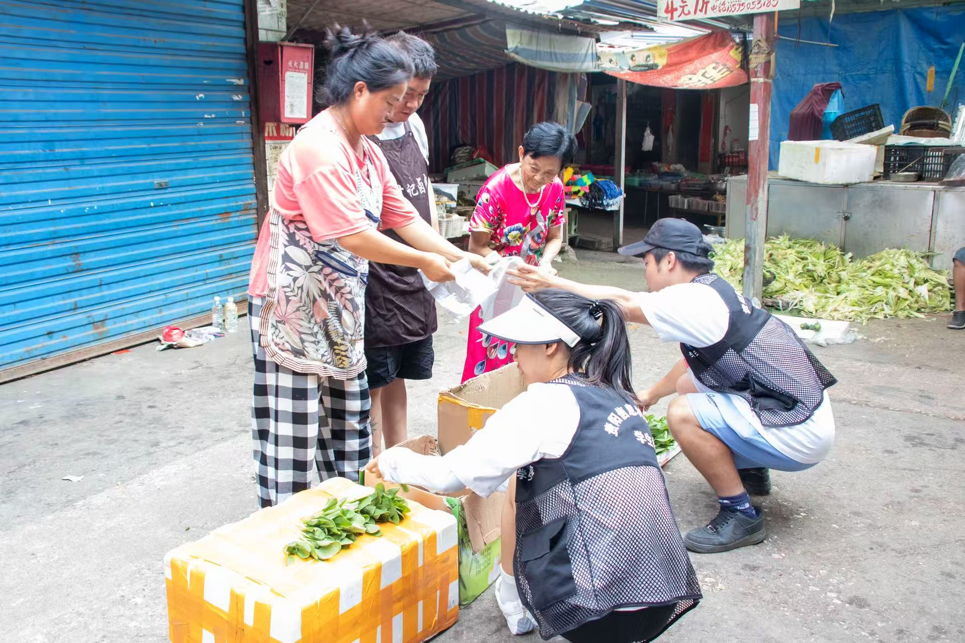 图为实践队助农小队在集市试点售卖上海青 冯若涵 供图
