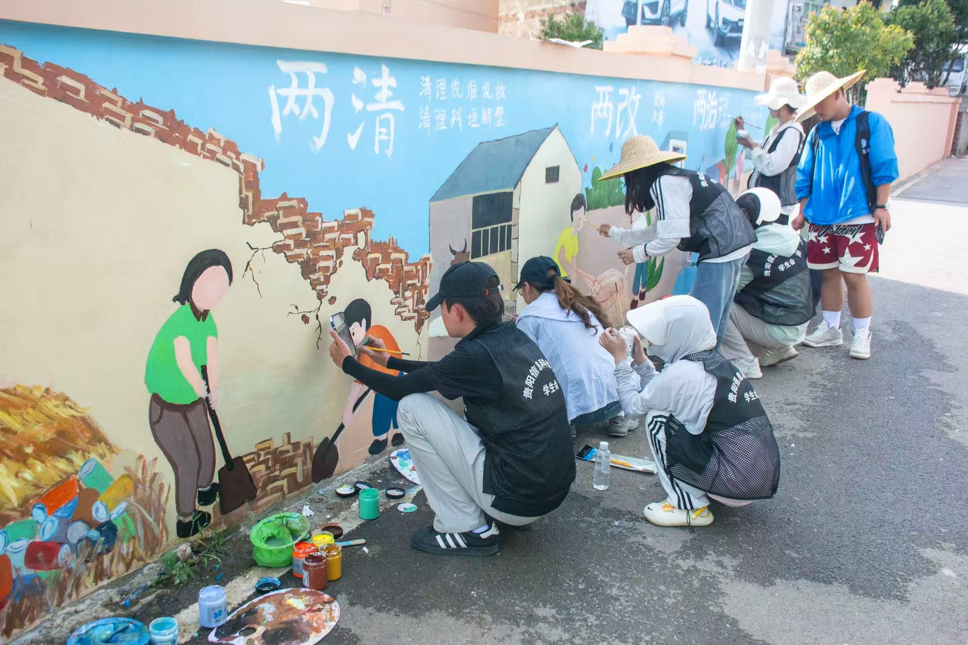 “墙绘不只是美化乡村的方式,更是政策宣传的‘活载体’。”贵阳信息科技学院带队老师说,希望通过直观的画面,让“两清两改两治理”理念融入村民日常,带动大家主动参与乡村环境整治。