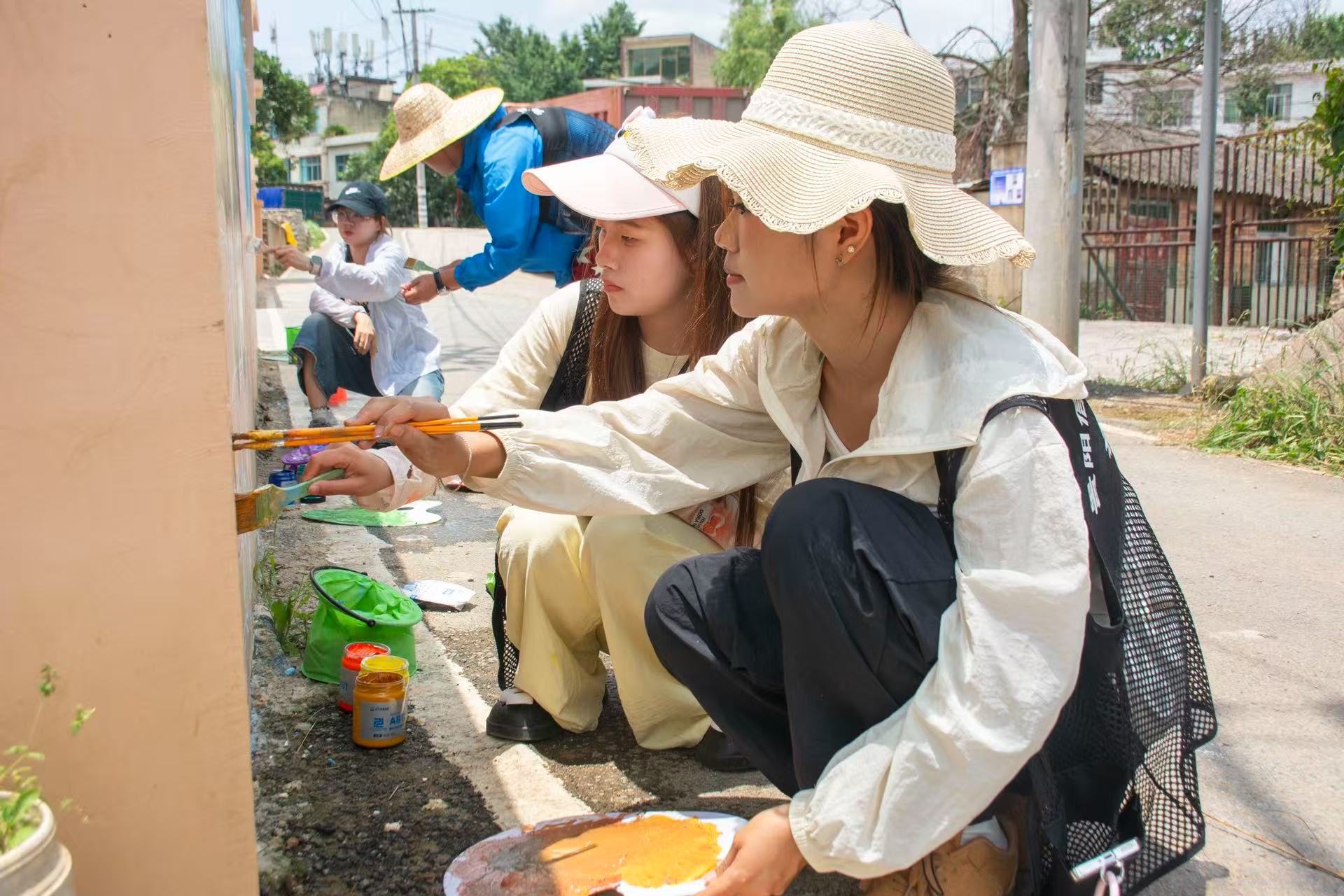 图为实践队墙绘小队在小河村墙绘现场 朱亭亭 供图