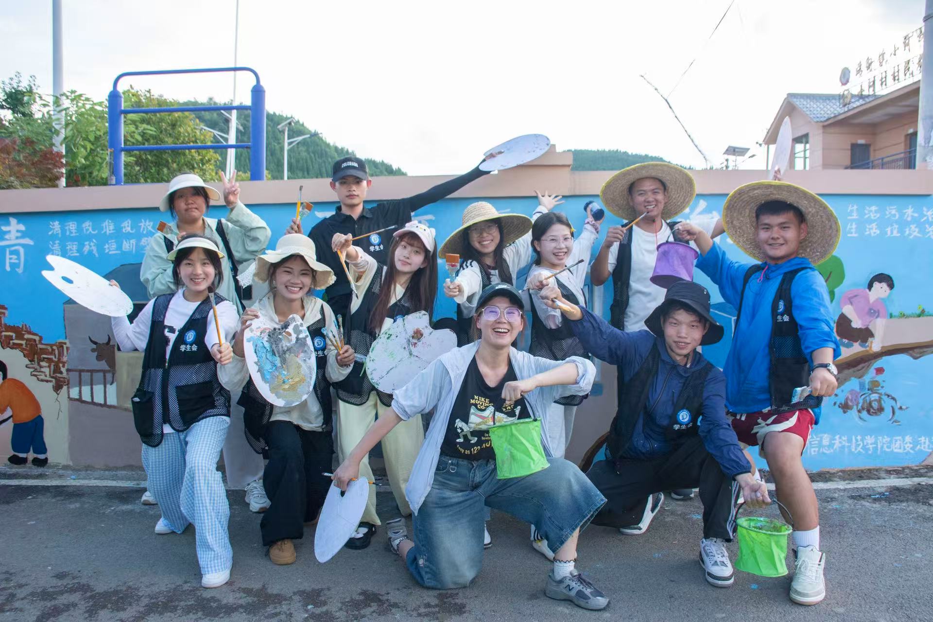 贵阳信息科技学院团委学生会三下乡实践队——青春画笔绘乡村 躬身劳作助农兴2025年7月8日,贵阳信息科技学院团委学生会“赴志愿 致青春”三下乡实践队走进清镇市站街镇小河村与杉树村,开展墙绘和助农活动,以墙绘美化乡村环境,以劳作助力农产收获,用青春行动践行社会责任,为乡村振兴注入活力。