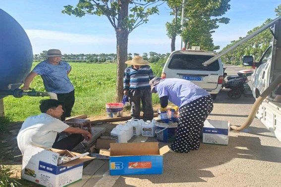 (图二为村民准备稀释农药)