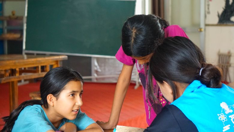(图为阿克苏市友谊社区茶苑内与青少年互动特写)