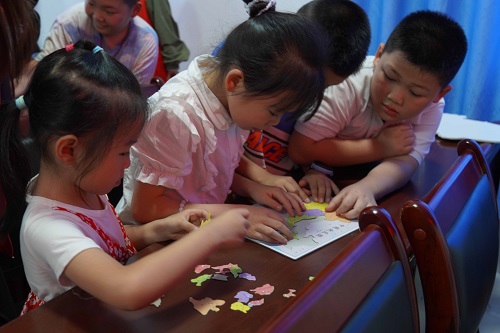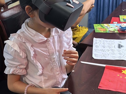 童心向党绘蓝图,数智薪火照红心。团队以思想引领为核心,打造红色教育课堂,借助VR技术赋能红色(党史)教育,让历史“活”起来。孩子们佩戴VR设备,沉浸式体验红军长征的艰苦历程,亲身“参与”飞夺泸定桥、翻越雪山等历史场景,感受革命先辈的英勇精神。“原来长征这么难,红军叔叔太勇敢了!”摘下眼镜的孩子感慨道。随后,“技能+N数智小学堂”通过“红色知识接力赛”,将VR体验中的关键知识点转化为趣味问答,在寓教于乐中深化学习效果;“巧手拼中国”地图拼图与“匠心筑天安门”积木搭建活动,则让爱国情怀在动手实践中具象化。活动尾声,全体师生齐唱《我和我的祖国》,在歌声中升华情感,完成从科技体验到信仰培育的闭环,让红色教育从“感知”走向“内化”,从“体验”走向“行动”。